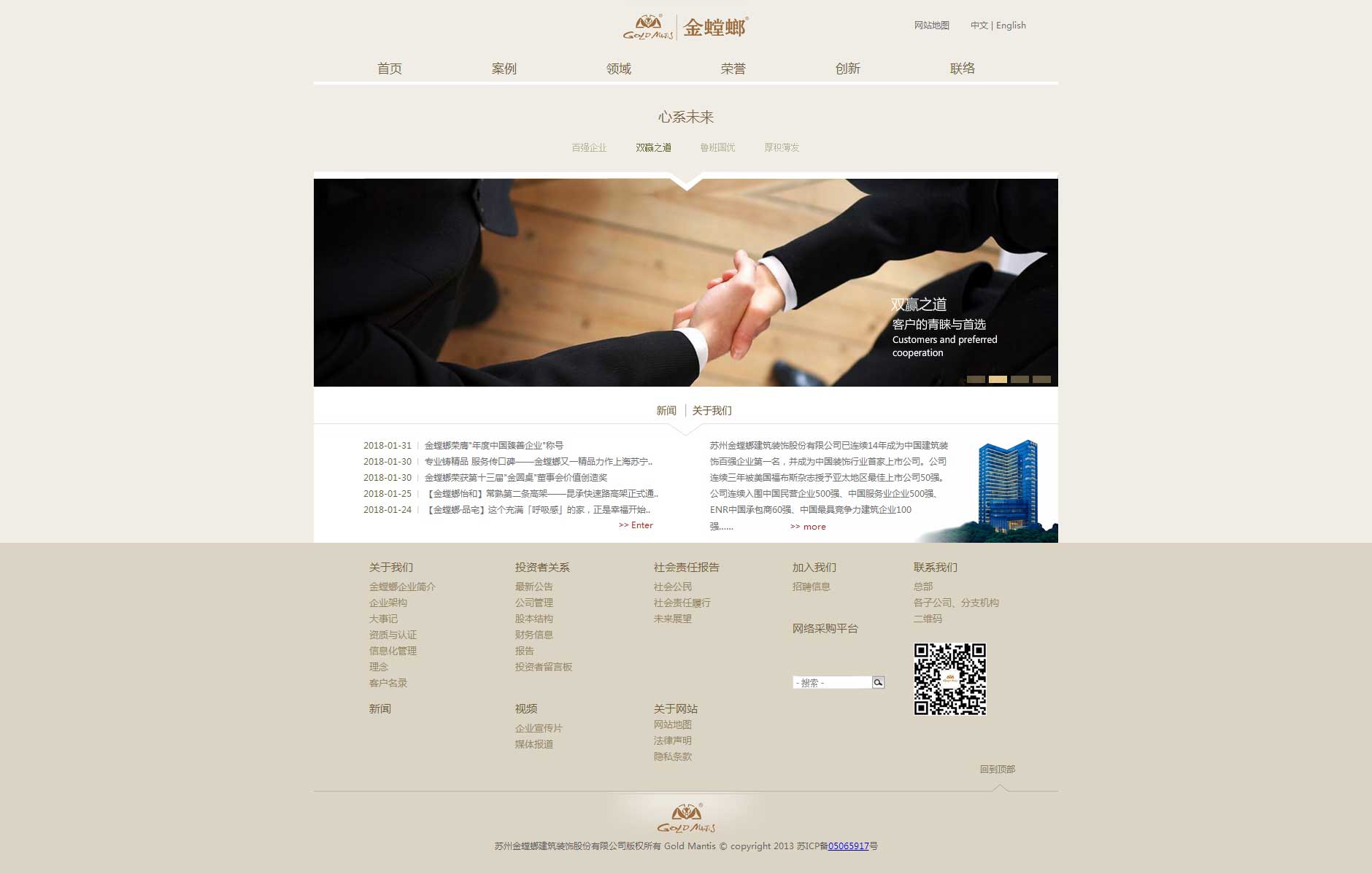 集團旗下的金螳螂裝飾是中國裝飾行業(yè)上市公司,已連續(xù)14年成為中國裝飾百強第一名,金螳螂集團已獲得魯班獎95項(股份公司91項),全國裝飾獎320項,是中國民營企業(yè)500強、中國服務(wù)業(yè)企業(yè)500強企業(yè)、ENR中國承包商80強、中國工程設(shè)計企業(yè)60強,被評選為中國受尊敬上市公司10強和中國企業(yè)公民商德獎,連續(xù)三年被美國福布斯雜志授予亞太地區(qū)上市公司50強,連續(xù)多年被評為中小板上市公司50強管理團隊。