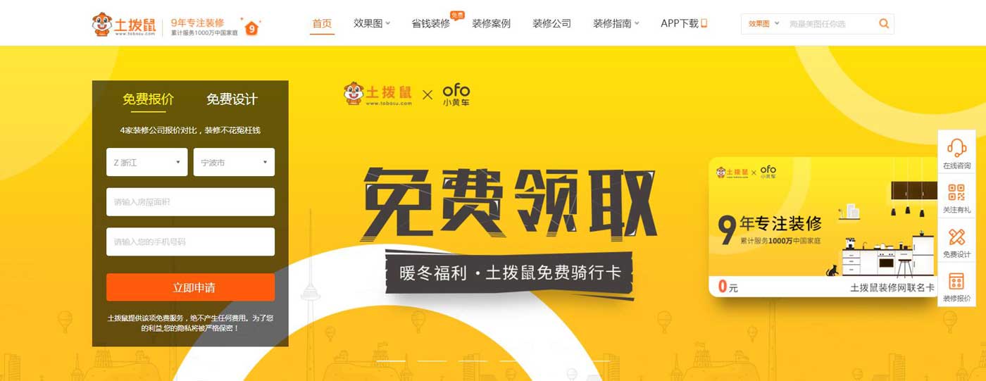 土拔鼠互聯(lián)網(wǎng)裝修網(wǎng)站首頁大圖效果